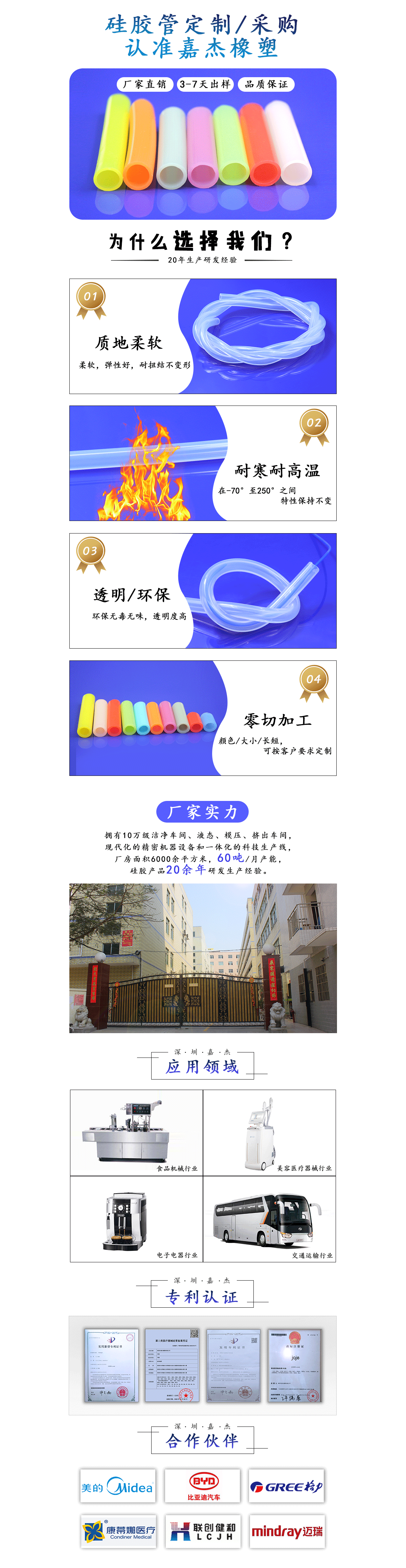 可過FDA,LFGB等認證,可醫用,使用進口硅膠原料制作,透明度高,回彈性好,耐扭結,安全環保,無異味.
