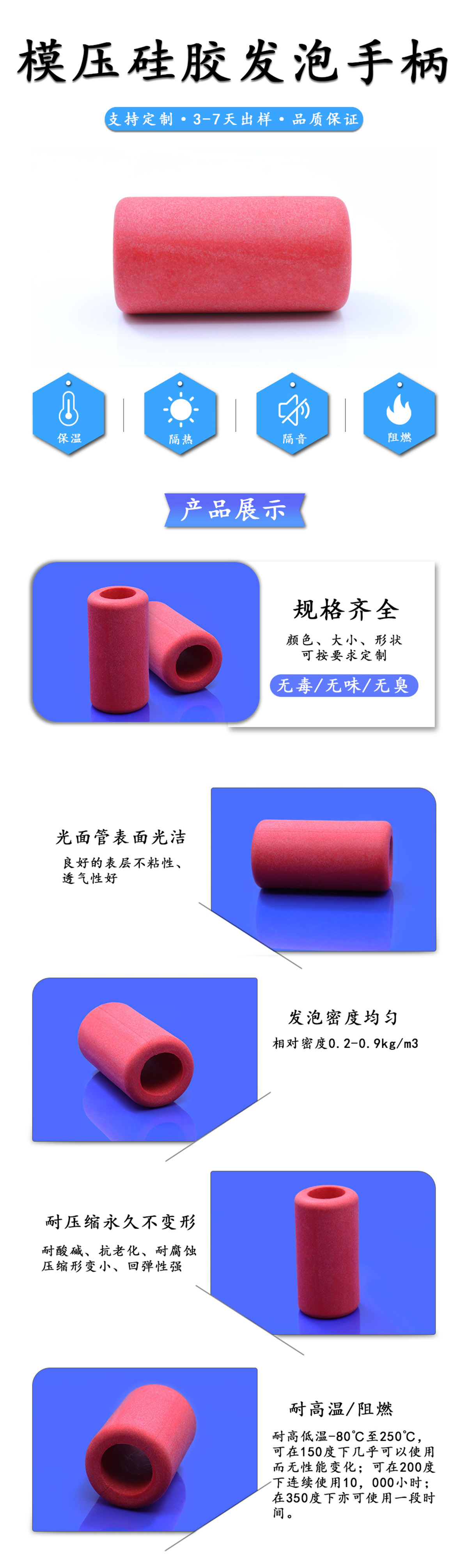 模壓硅膠發泡手柄: 采用優質硅膠原料制作,安全無毒無味、顏色、大小、形狀可按要求定制