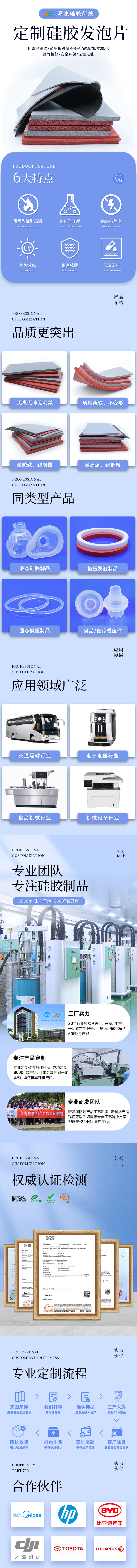 模壓硅膠發泡片: 采用優質硅膠原料制作,安全無毒無味、顏色、大小、形狀可按要求定制