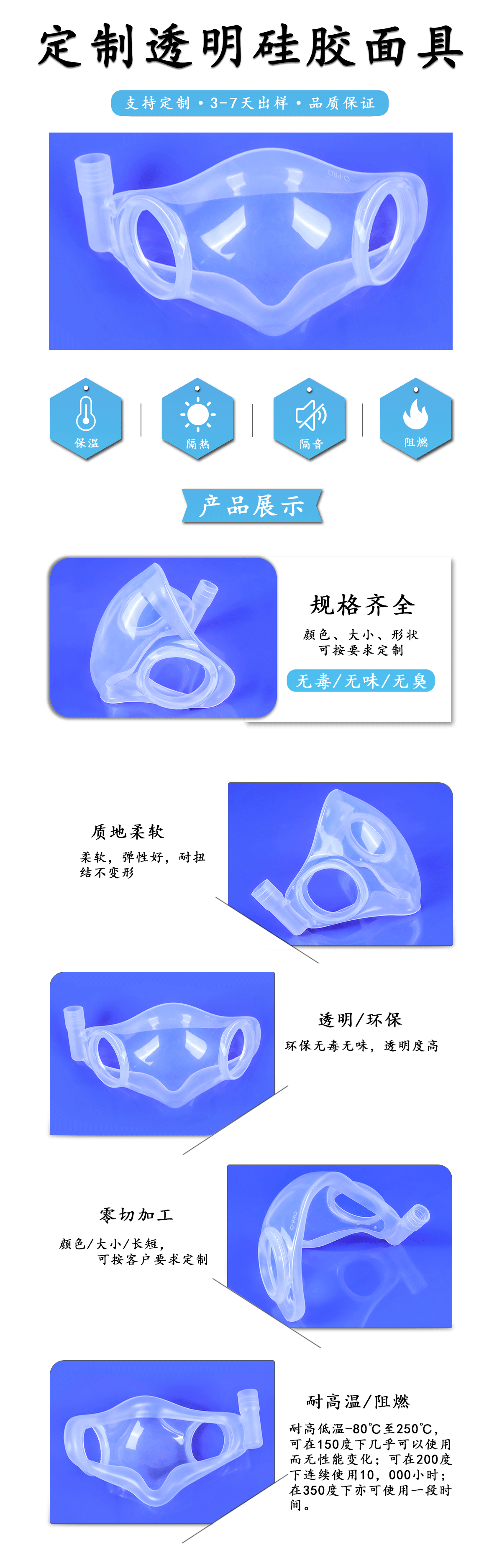 定制透明硅膠面具性能: